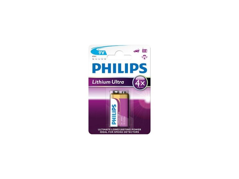 Jeden kus baterie řady Lithium Ultra. Baterie zůstává použitelná až 7 let. Vydrží čtyřikrát déle než alkalická baterie. Baterie Philips neobsahují žádné škodlivé těžké kovy, jako je kadmium, rtuť a olovo.
