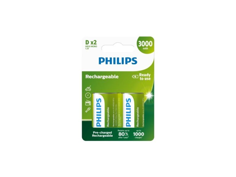Přednabité nabíjecí velké mono baterie D (1,2V), kapacita 3000mAh. Technologie NiMH pro vícenásobné nabíjení, šetří peníze, protože ji lze 1000krát nabít. Neobsahuje těžké kovy, kadmia, rtuti. Ready To Use.